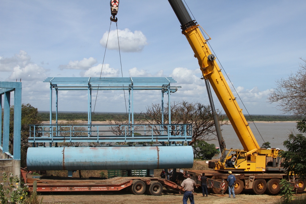 21/01/2016 23:30 Con el apoyo de Servicios Generales de Caroní y Ferrominera Orinoco se realizó el traslado fluvial del sistema de captación (balsa-toma) del nuevo Acu...
