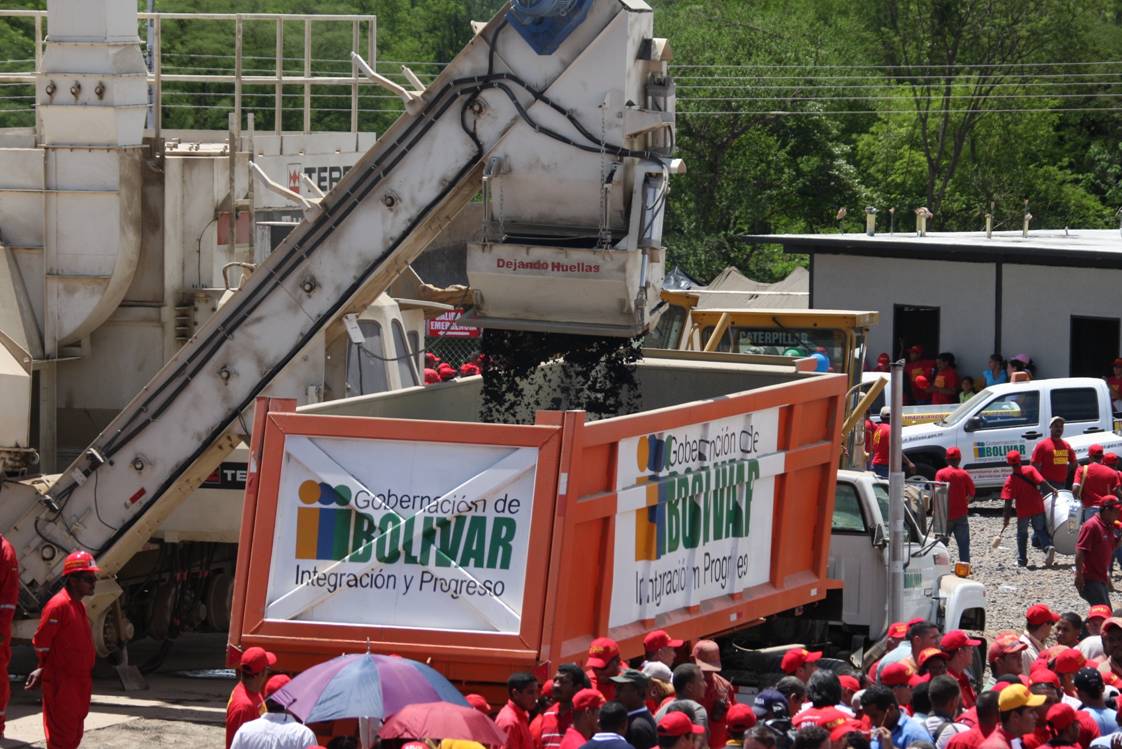 Por otra parte, el primer mandatario regional anunció que la planta de asfalto de Upata (la tercera, luego de las de Ciudad Bolívar y Guayana) está en pleno proceso de instalación y que iniciará labores -aproximadamente- en un mes para dotar de pavimento a los municipios Piar y Padre Pedro Chien. Asimismo la gobernación de Bolívar tiene contemplado adquirir dos maquinarias más para colocarlas en Tumeremo (al sur del estado) y en Caicara (al oeste), lo que permitirá ampliar el rango de acción del mencionado plan de asfaltado.