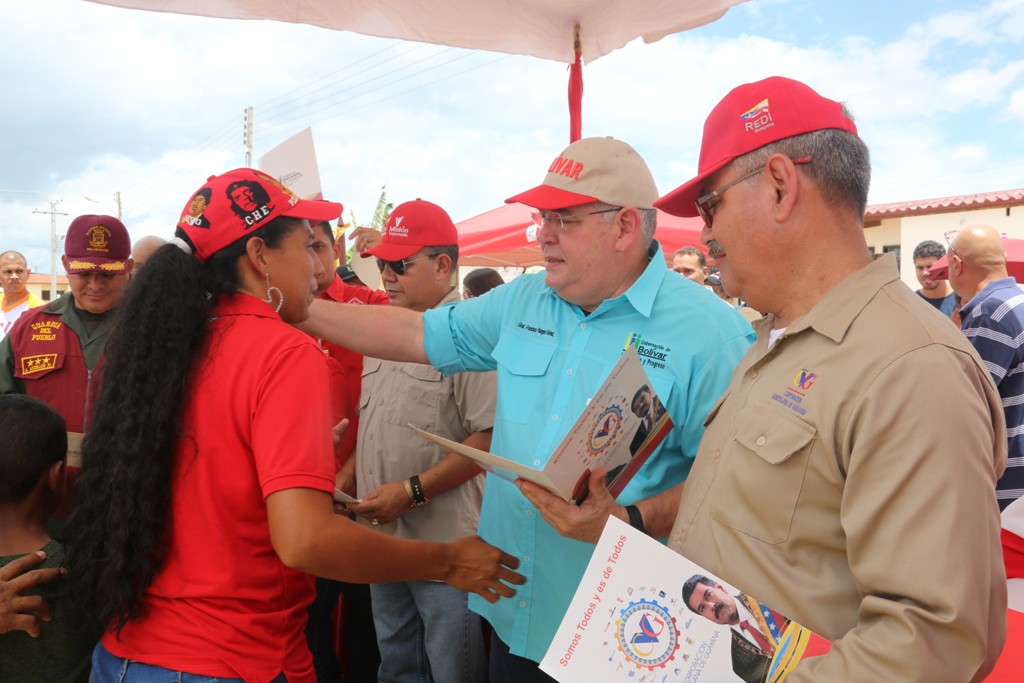 El gobernador del estado junto al presidente de Inviobras, Héctor Herrera Jiménez, y el vicepresidente de desarrollo territorial de la Corporación Venezolana de Guayana (CVG) Alirio Rojas, entregó titularidad de las 70 viviendas culminadas de las 145 que conforman el urbanismo Villa Upata, ubicado en la parroquia Unare del municipio Caroní.