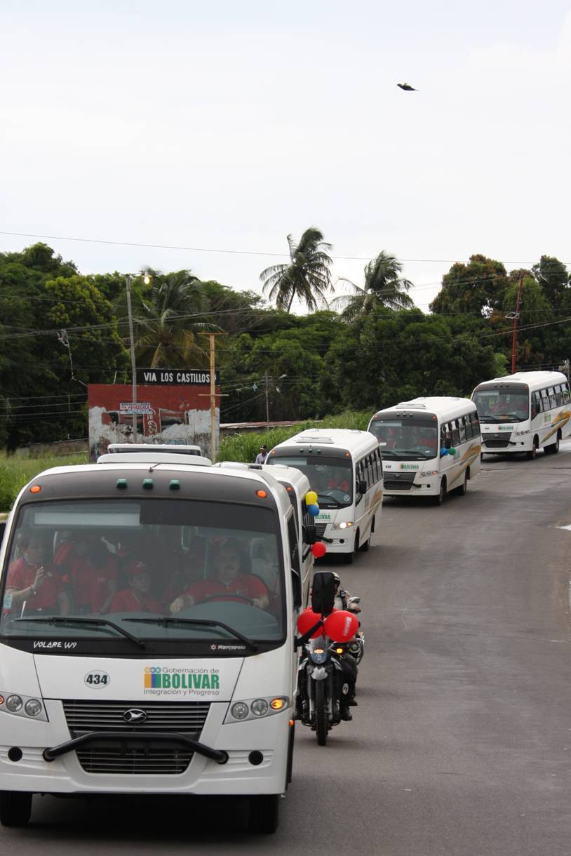 Desdeel estacionamiento del estadio LaCeiba, en Ciudad Guayana, el gobernador Francisco RangelGómez acompañado por la primera dama, Nidia Escobar de Rangel y la secretariageneral de Gobierno, Ovany Aguirre, llevó a cabo la entrega de 40 unidades detransporte urbano al mismo número de beneficiarios que serán sustituidos porperreras en procura de la dignificación del servicio de transporte público dela entidad, iniciativa implementada por el Ejecutivo regional a través delFondo Bolívar.