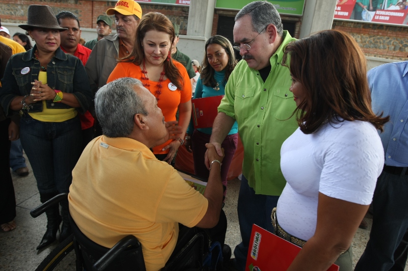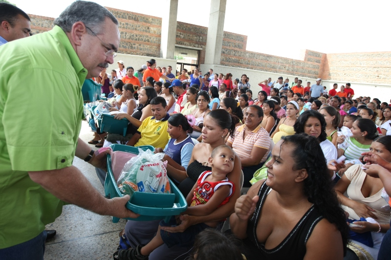durante un acto humanitario 76 personas con discapacidad, 22 organizaciones sin fines de lucro y 150 futuras madres, recibieron donativos de la mano del gobernador de Bolívar, Francisco Rangel Gómez, y la primera dama, Nidia Escobar de Rangel.