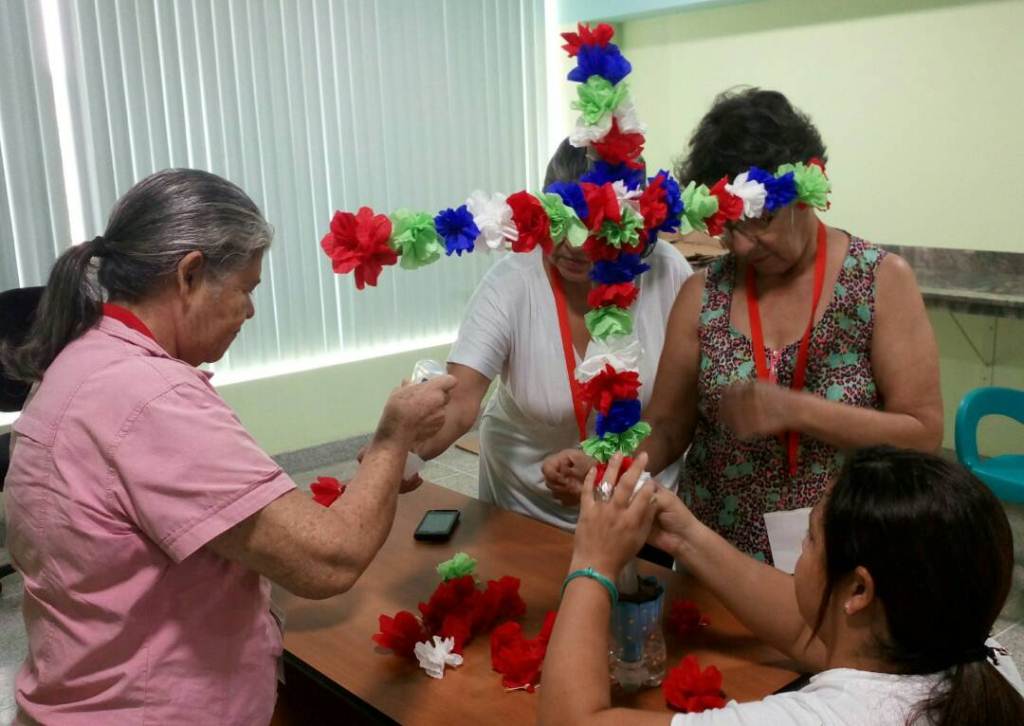 Es por ello que los abuelos que cada día disfrutan de las múltiples actividades que se preparan para ellos en la fundación, se organizaron y bajo la asesoría de los especialistas que allí trabajan realizaron hermosas flores en papel crepé de varios colores para adornar una pequeña cruz de madera.