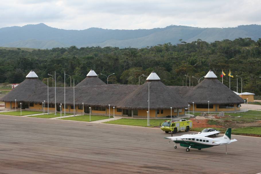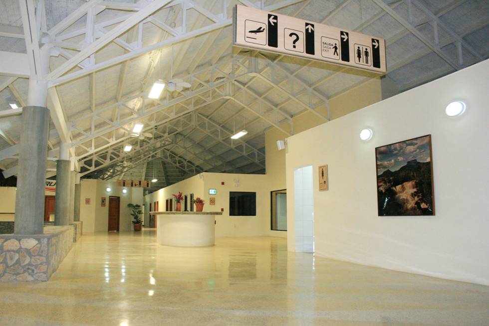 La fachada de este terminal aéreo está inspirada en las edificaciones típicas de la etnia pemón, comunidad indígena que habita en Gran Sabana. Con más de 2 mil 500 metros de construcción, esta obra cuenta con oficinas del Servicio Nacional Integrado de Administración Aduanera y Tributaria (SENIAT), Servicio Autónomo de Sanidad Agropecuaria (SASA), migración, meteorología, Instituto Nacional de Aeronáutica Civil (INAC) y de la Guardia Nacional.