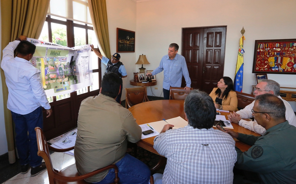 Durante la reunión, el secretario de Seguridad Ciudadana de la Gobernación, Gilberto Velasco, presentó el dispositivo de seguridad que se implementará en el estado, para blindar de tranquilidad a quienes participen en la Feria Agropecuaria Bolívar Potencia 2016.