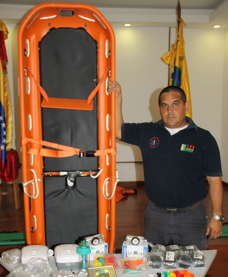 “Entre los equipo podemos mencionar que contamos con camillas de impacto, collarines de rescate, Kendrick que nos sirve para inmovilizar columna (completamente) asegurando un excelente traslado del paciente e inclusive permite tomar rayos X y hacer exámenes médicos manteniendo una posición adecuada, también se adquirieron nebulizadores, manómetros para cilindro de oxígeno portátil, manómetros para cilindro de oxígeno integral,cánulas de diferentes tamaños desde el recién nacido hasta el adulto, manómetros digitales, cesta de rescate quepermite rescatar pacientes en zonas de difícil acceso, tijeras de rescate - Tijeras de Extricación)equipo que puede cortar cierto grado de latón en caso de algún accidente e inclusive corta con facilidad el cinturón de seguridad, lo que nos permite agilizar las labores de rescate de un paciente,dentro del equipamiento se cuenta con Férulas semi-rigidas de foami que inmoviliza todo los miembros tanto superiores como inferiores del lesionado en caso de politraumatismo,así como nuevos maletines que son prácticos e impermeables con soporte de goma”acotó Salazar.