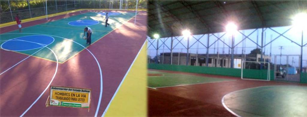 Yinette Carias, titular de la referida dependencia, mencionó los trabajos desarrollados en el poblado de La Flor de los Hicoteos perteneciente a la parroquia Zea, en Ciudad Bolívar, lugar donde se acondicionó la cancha de usos múltiples mediante la acometida de pintura general con su respectiva demarcación de las áreas de juego, así como de las porterías y aros de baloncesto.