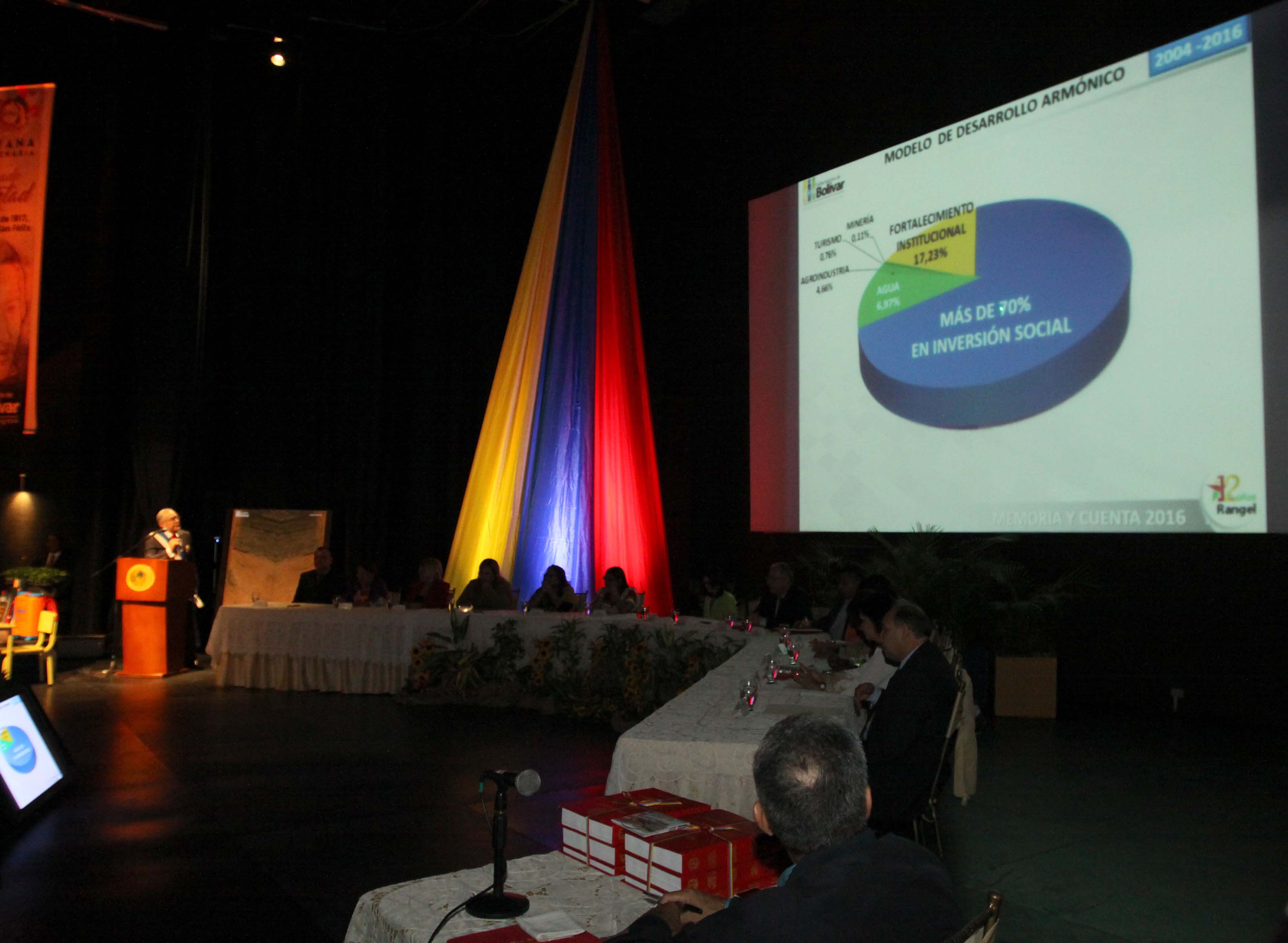Con una muy detallada exposición, el gobernador Francisco Rangel Gómez presentó la memoria y cuenta 2016 de una gestión altamente productiva, cargada de acciones eficientes, obras reivindicativas y que le ha cumplido al pueblo de Bolívar con especial énfasis en la atención social directa.