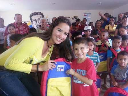 El gobernador del estado Bolívar, Francisco Rangel Gómez, entregó como parte de su política educativa 200 morrales escolares a niños y niñas de los sectores Villa Verde y La Loma, en la población de Upata al sur de la entidad.