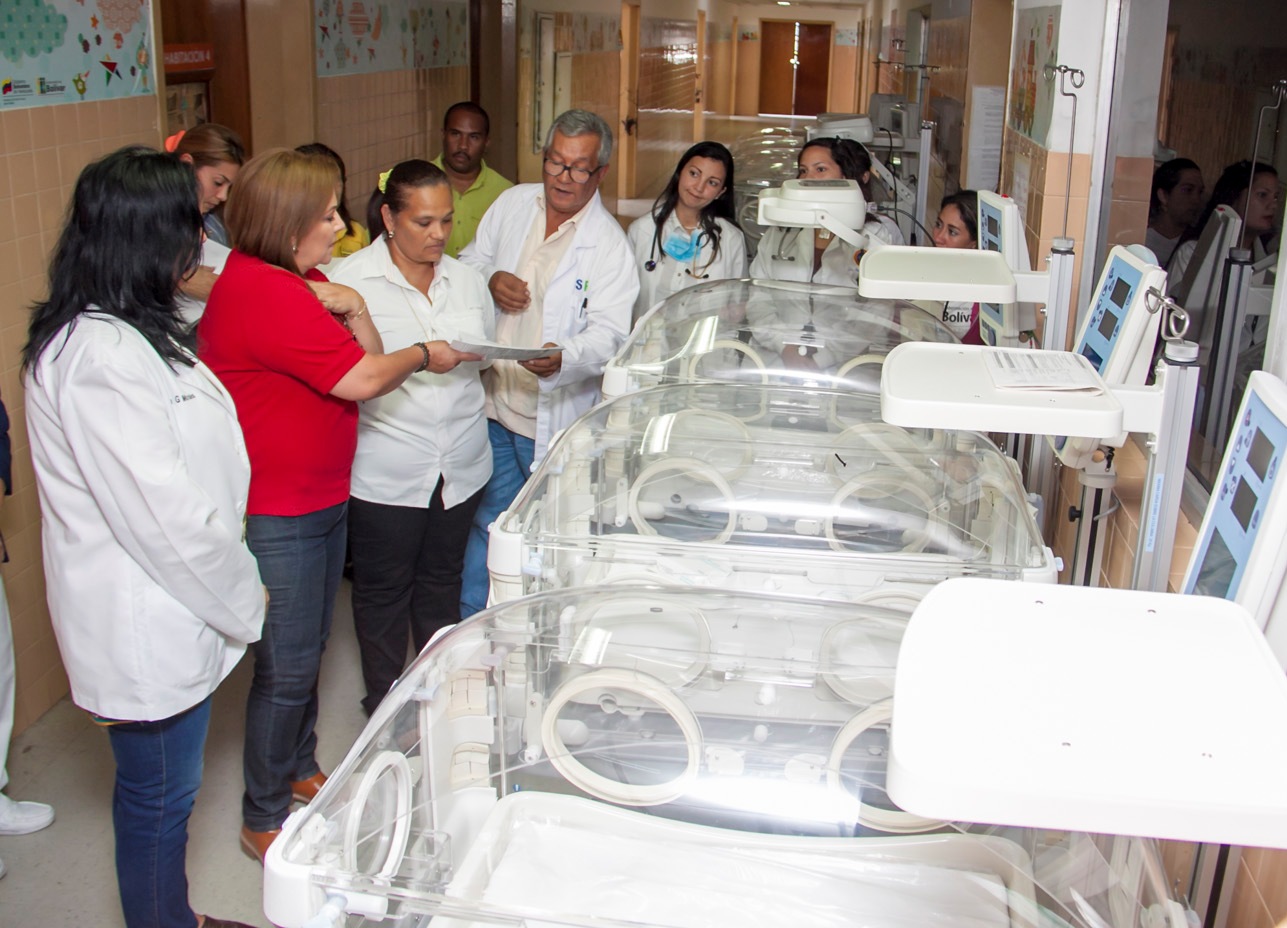 La Primera Combatiente del estado Bolívar, Nidia Escobar de Rangel, en nombre del gobernador Francisco Rangel Gómez y del Ministerio del Poder Popular para la Salud (MPPS), entregó un conjunto de equipos destinados a fortalecer la salud materno infantil en Perinatología I y II, Sala de Parto, Unidad de Cuidados Intensivos Pediátricos, Ginecología y Obstetricia del hospital Ruiz y Páez.