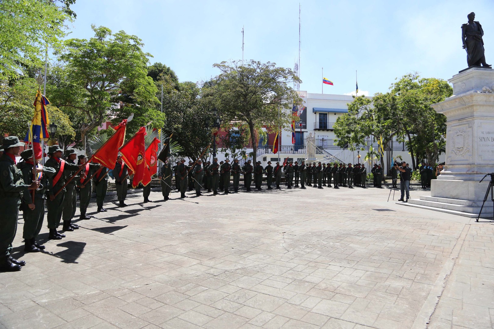 Así, en medio del escenario histórico de la región y con ciento cuarenta y cinco (145) hombres en formación, representando diversos componentes de la Fuerza Armada Nacional Bolivariana (FANB), el capitán de Corbeta Johan Soteldo Pérez, comandante de la agrupación de parada, realizó los honores al Libertador SimónBolívar, con motivo de los 187 años de su siembra.
