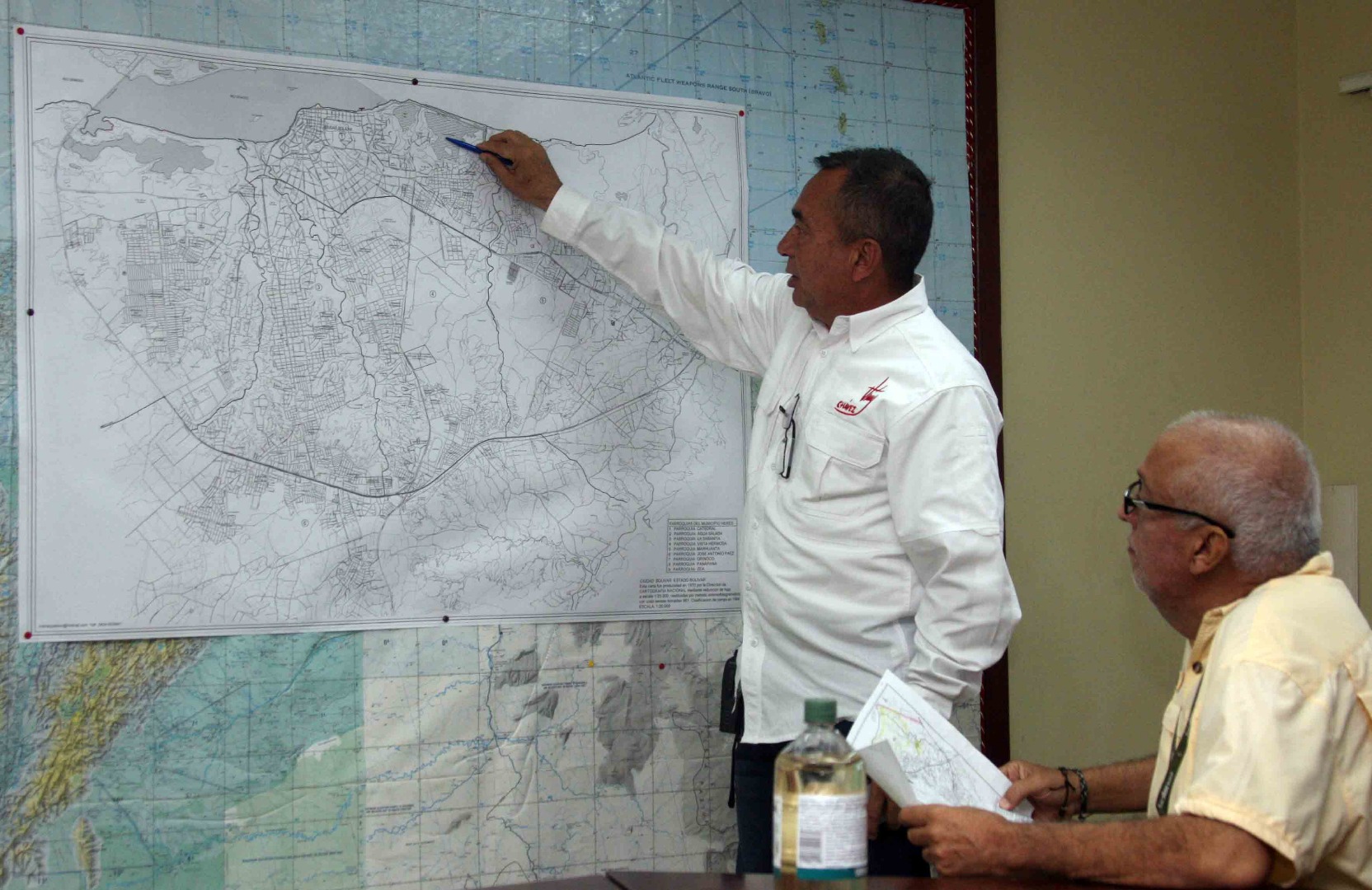 El Mandatario Bolivarense, fue acompañado por Sergio Hernández, Alcalde del municipio Heres, Franklin Franchi, presidente del Instituto de Salud Pública, Jesús Ortega, malariólogo, representantes del Instituto Nacional de Aeronáutica Civil, entre otras autoridades que se sumaron al inicio del plan de aspersión que se realiza por primera vez en la entidad.