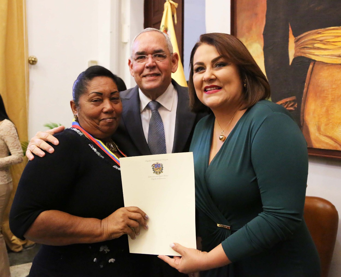 En la entrega de condecoraciones, la primera dama del estado recibió un reconocimiento de manos del gobernador Rangel por todo el trabajo social y el amor incondicional que ha otorgado a tantos niños, niñas, jóvenes y adultos mayores bolivarenses.