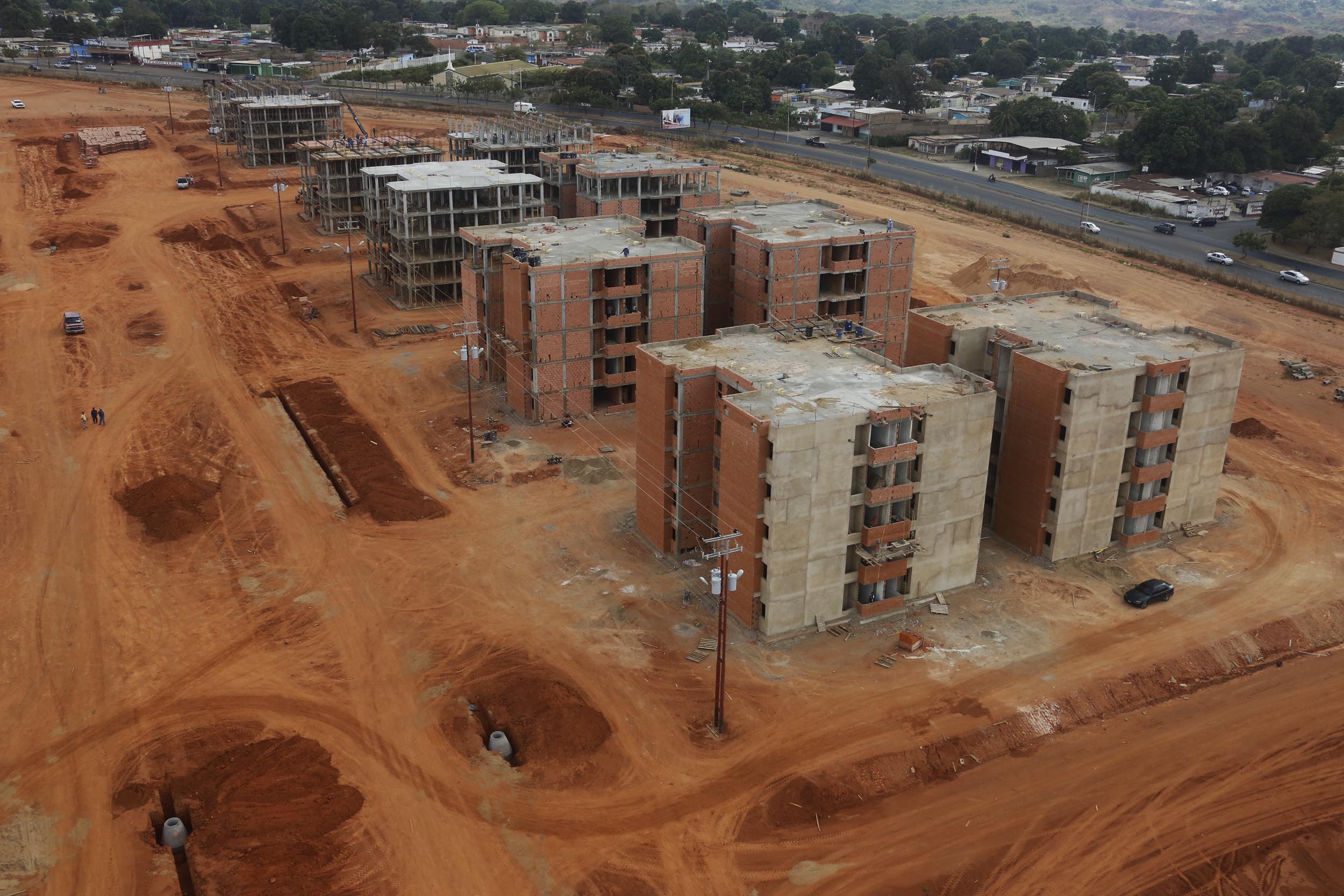 Estas unidades habitacionales se están construyendo con mano de obra bolivarense y con 6 millones de bloques de arcilla producidos en la empresa socialista Alfarería Bolívar, creada durante la gestión del gobernador Francisco Rangel Gómez.