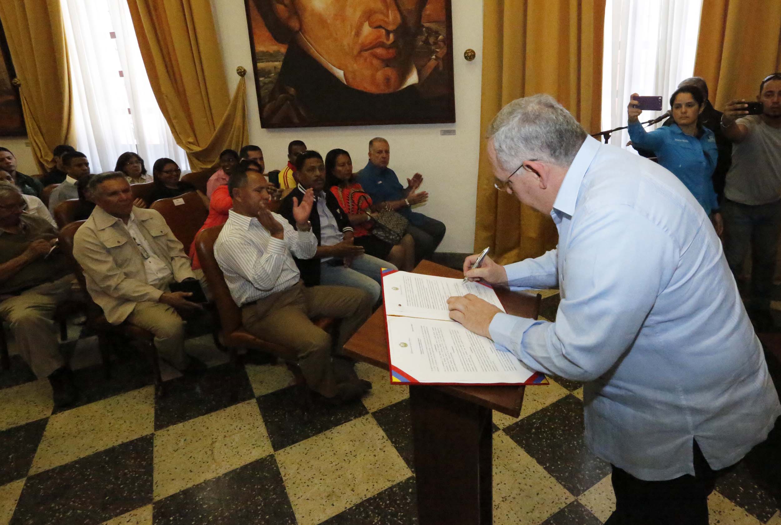 El mandatario regional estuvo acompañado durante este simbólico acto por el presidente de la Corporación Venezolana de Guayana, Mayor General Justo Noguera Pietri; el diputado a la Asamblea Nacional por Bolívar y jefe del Bloque de la Patria; Héctor Rodríguez; el presidente del CLEB, Kamal Naim y los alcaldes de Heres, Sergio Hernández y de Caroní; Eriberto Aguilera, además de diputados regionales, concejales y otras autoridades.
