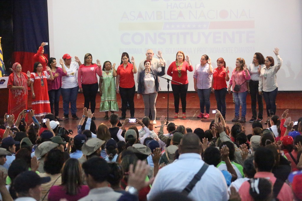 Mujeres provenientes de distintos municipios de la entidad, promotoras sociales, movimientos sociales de mujeres, UnaMujer, voceras de distintas misiones sociales, milicianas, féminas de la Guardia Nacional Bolivariana, Policía del Estado Bolívar, círculos de lucha feministas, cultoras, trabajadoras del campo, clase obrera de la mujer, consejos comunales, entre otros; se unieron en el especial recinto del teatro de CVG Venalum, organizándose con fuerza para apoyar la constituyente convocada por el presidente Nicolás Maduro.
