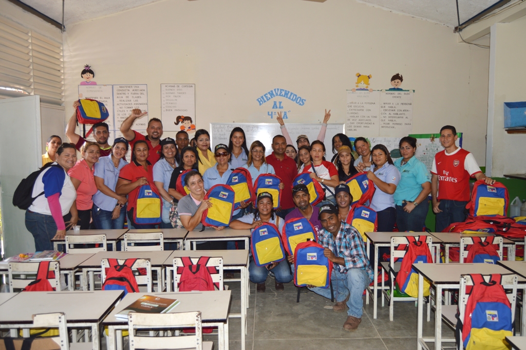 Durante la mañana de este miércoles, un grupo de trabajadores del Ejecutivo regional en representación de la pareja gubernamental conformada por el gobernador Francisco Rangel Gómez y la primera combatiente Nidia Escobar de Rangel, realizaron la entrega de los morrales por grados, al tiempo que invitaron a los pequeños a prepararse y convertirse en profesionales de bien para la patria.