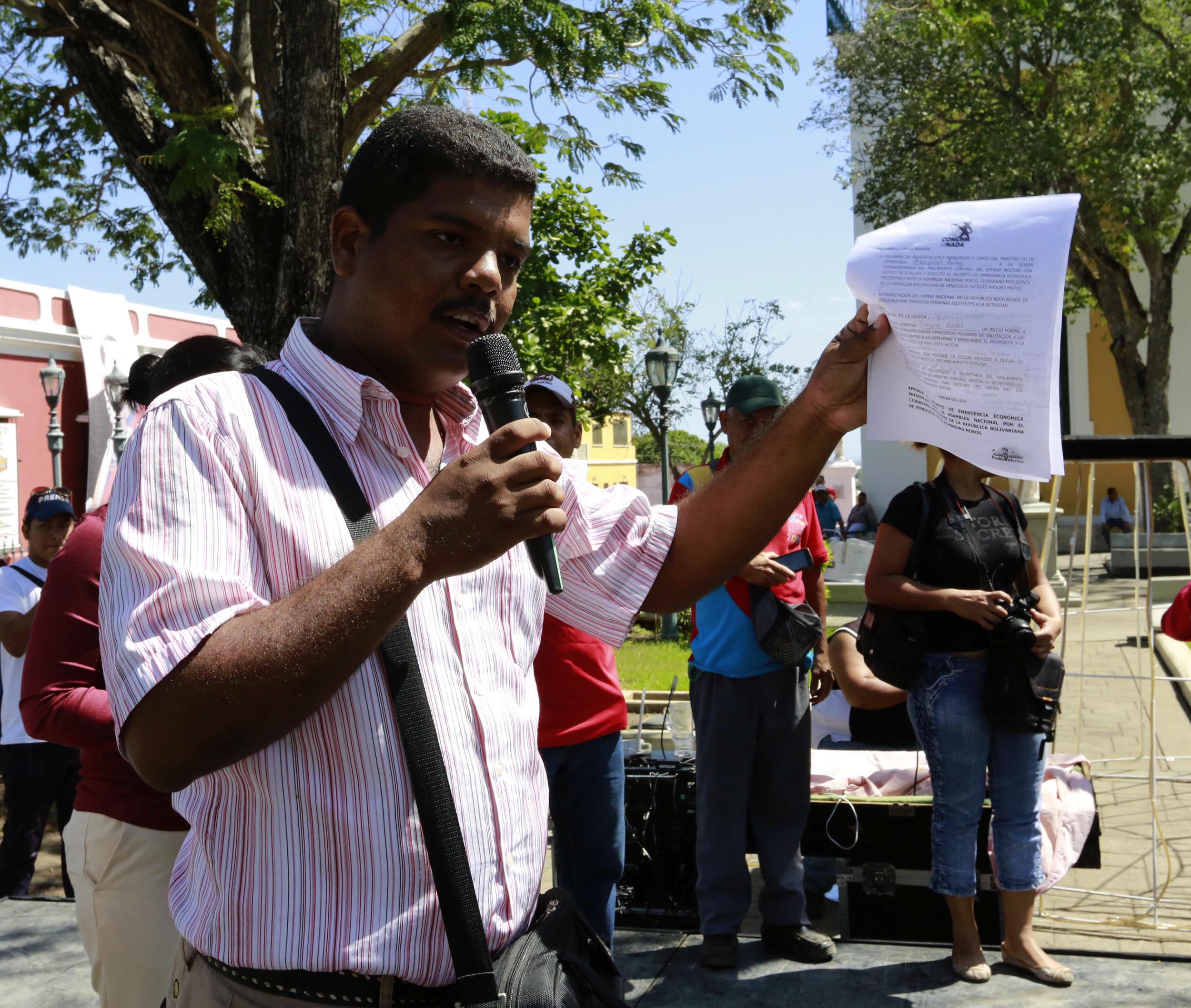 Ezequiel Avilez, vocero Nacional del Parlamento Comunal, señaló antes de iniciar la sesión que sí la AN no se pone del lado del pueblo hay mecanismos que están en la constitución para defender los derechos del pueblo venezolano.