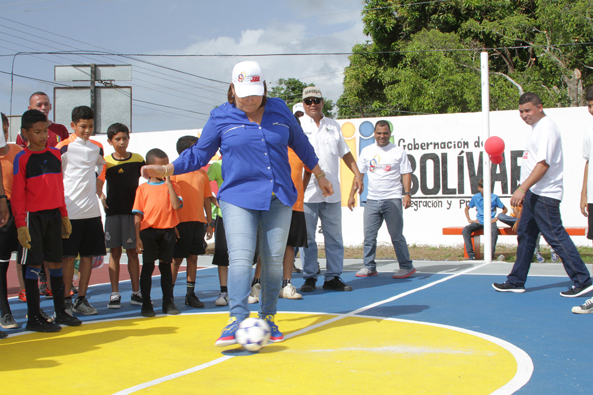 La primera dama del estado Bolívar, Nidia Escobar de Rangel, explicó que los trabajos realizados forman parte de las acciones sociales que efectúa el primer mandatario regional para profundizar el trabajo de masificación deportiva, de niños, niñas y adolescentes.