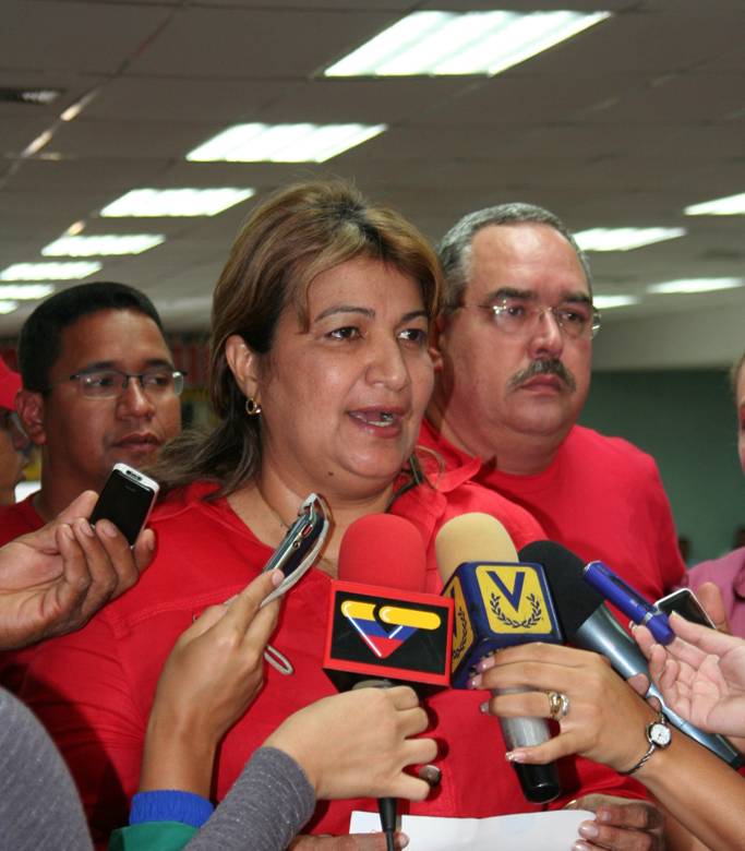 Santaella, acompañada por Francisco Rangel Gómez, candidato a la Gobernación del estado Bolívar y el resto de los candidatos del PSUV a las distintas alcaldías, dio a conocer las estrategias para emprender la elección de los próximos diputados regionales.