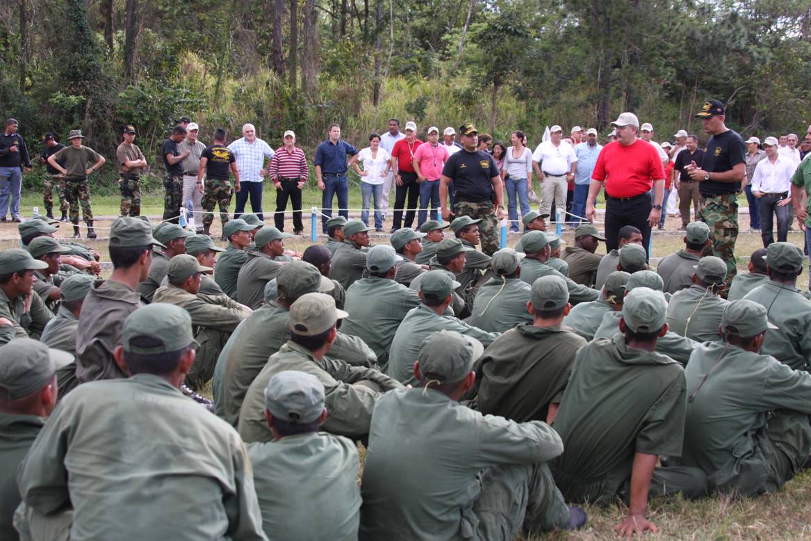 Para concluir esta jornada de dos días de trabajo, el gobernador Francisco Rangel y miembros del gabinete ejecutivo de trabajo se acercó hasta el 507 Batallón de Fuerzas especiales "Cnel. Domingo Montes" en Guri, donde saludo a los miembros de distintos pelotones de la Fuerzas Armadas y compartió con los uniformados de esta unidad.