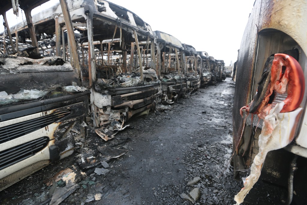 El ataque a la sede de Transbolívar se originó en horas de la madrugada de este lunes. El criminal acto vandálico no dejó pérdidas de vidas humanas que lamentar; sin embargo las 53 unidades de transporte afectadas fueron totalmente consumidas por el fuego, afectando de forma temporal el sistema de rutas establecidas para el transporte de pasajeros en la región.