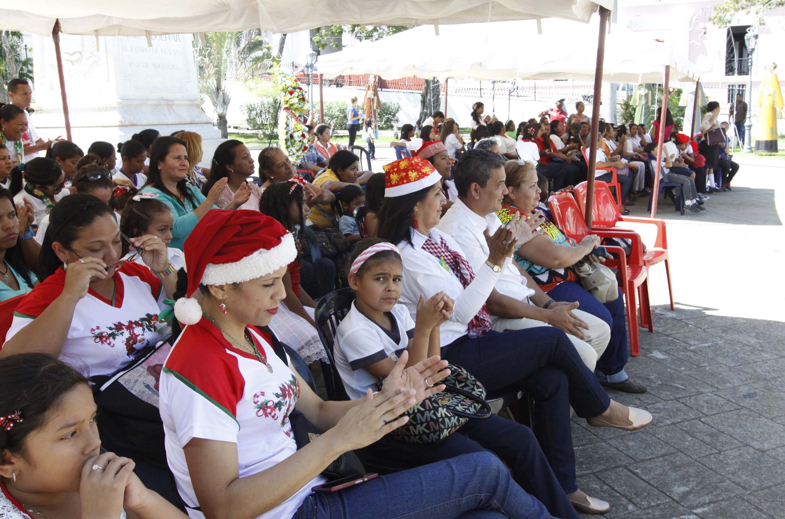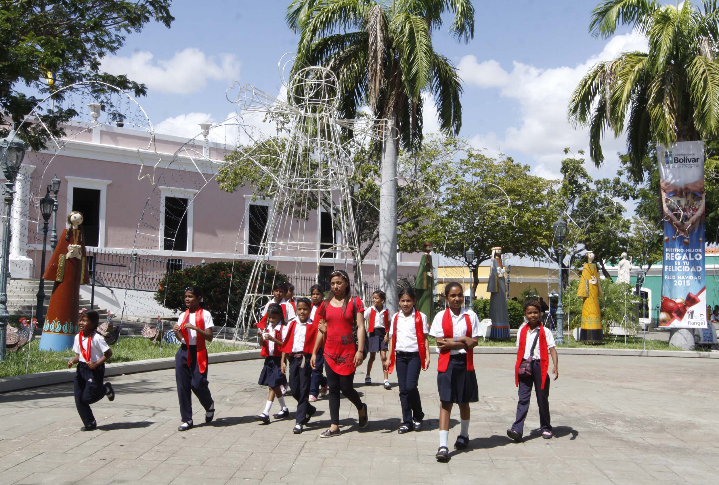 Este viernes, estudiantes de 28 escuelas nacionales y estadales del municipio Heres demostraron que en Bolívar se vive a plenitud la navidad, mientras protagonizaban un encuentro de parrandas en la histórica plaza. Durante el acto, más de 300 voces deleitaron a los presentes con típicas canciones de la época como: villancicos, gaitas, parrandas y aguinaldos.