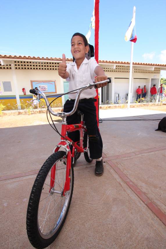 11/12/2008 23:30 Los pequeños estudiantes de la Unidad Educativa Bolivariana "Armando Reverón" recibieron contentos al gobernador Rangel Gómez, quien llegó cargado de bicicletas para toda la matrícula escolar